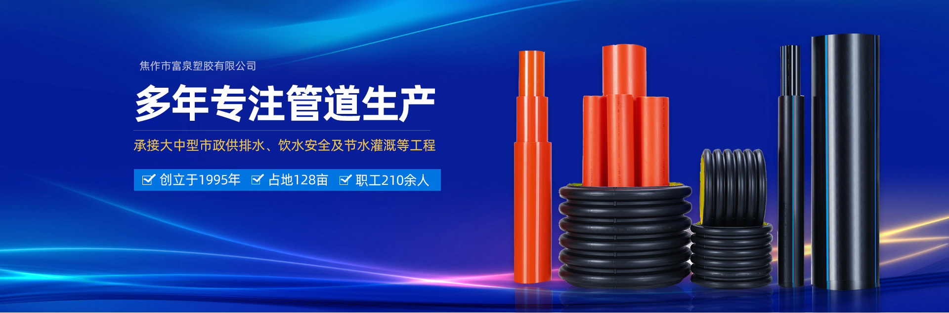 - 焦作市富泉塑膠有限公司,創立于1995年,是一家集研發、設計、生產、銷售為一體的大型管材企業。公司位于太極故里、黃河之濱一一河南焦作溫縣。公司占地128畝,現有職工210余人,其中具有中技術職稱的19人。生產、檢驗設備58臺(套),包括PVC實壁管生產線11套、PE實壁管生產線12套、HDPE雙壁波紋管生產線6套、PVC雙壁波紋管生產線5套,檢驗設備14臺(套)。主要產品有:Φ20mm-630mm、各種壓力規格的PVCU、PVC-M、PE給水管材,PVC-U節水灌溉管材,HDPE燃氣和礦用管材,DN200-800mm的HDPE、PVC雙壁波紋管及各種噴灌、滴灌工程材料。承接大中型市政供排水、飲水安全及節水灌溉等工程?! 「蝗苣z公司重視產品的質量、安全、環保和節能,在同行業中率先完成了“新華節水產品認證”,全方面通過ISO9001:2008國際質量管理體系、IS014001:2004環境管理體系和OHSAS18001職業健康安全管理體系的一體化導入,并建立起規范的現代企業管理體系。公司以“質量”為先導,采用質量跟蹤、多環節把關的方法,組建具有行業水準的企業技術檢測中心,常年委托水利部節水灌溉設備檢測中心、河南省產品質量監督檢驗院對產品跟蹤檢測,并由中國人民保險公司承保產品質量。公司連續多年被河南省水利廳確定為“安全飲水設備、節水灌溉設備”定點生產企業,并獲得“中國名優產品”“質量、服務、信譽AAA企業”“河南省**產品”“河南省水利企業”“河南省守合同、重信用企業”等榮譽稱號?! 「蝗苣z公司堅持“用戶為上”的服務理念,長期以來,全方面關注客戶價值,不斷提升服務水平。服務隊伍常年為客戶的產品設計、施工、安裝提供合理的方案和全程細致、周到、**、快捷的技術服務。公司自成立以來,一直堅持以人為本的宗旨,塑造企業形象,并致力于新產品的開發,憑借雄厚的技術開發能力,先進的工藝制造流程,嚴格的質量管理保證體系,優良的售后服務網絡,已成為河南省大的飲水、灌溉及排水管材設備制造商。產品暢銷全國,而且還以公司雄厚的綜合實力在業界中占據著重要的地位。